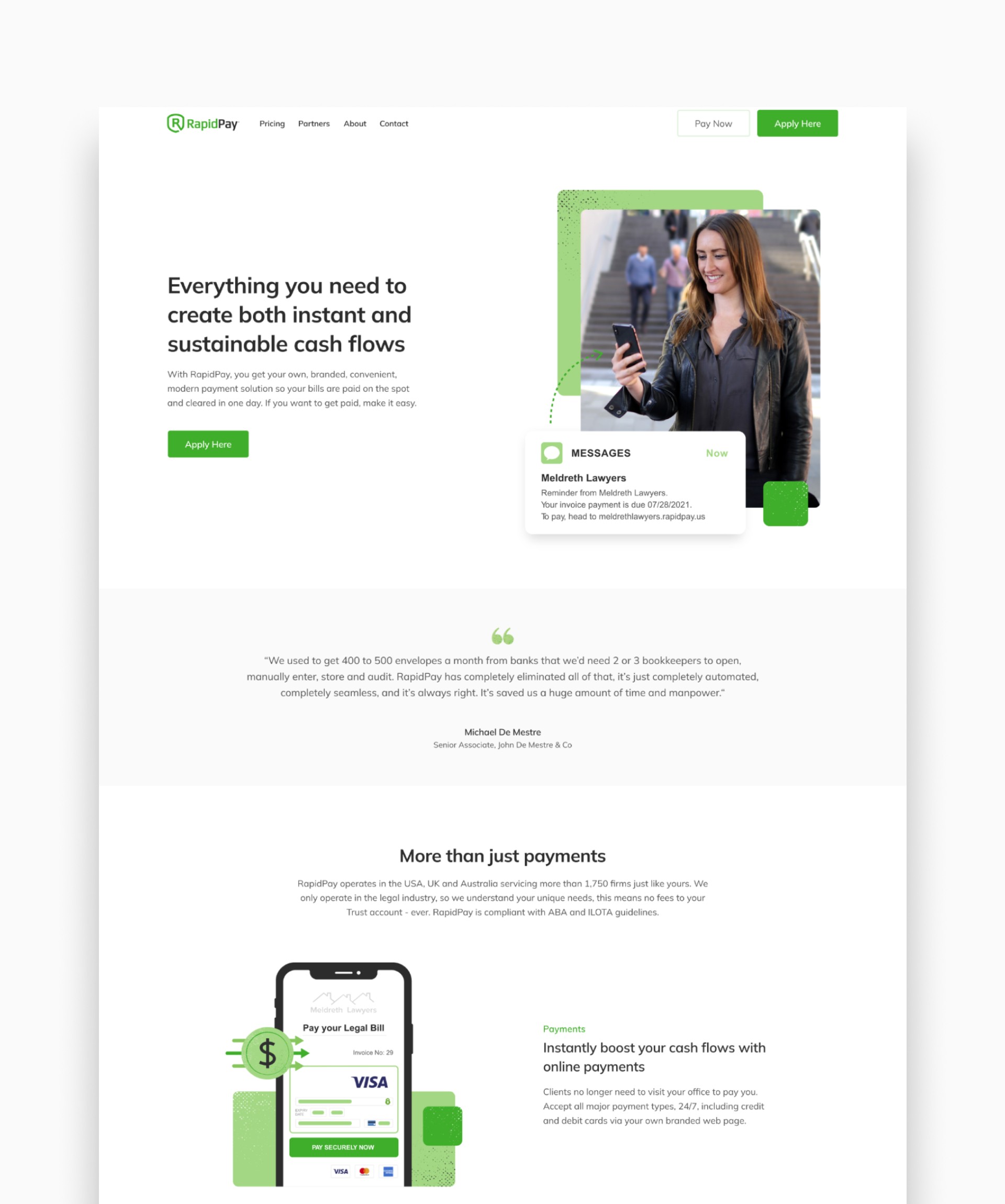 The RapidPay website project focused on introducing the brand to the US market and supporting its growth as a competitive player in legal and financial transactions. The site needed to educate a new audience, generate leads for the US sales team, and establish a scalable brand identity that could roll out globally. This was more than just a launch — it was the foundation for RapidPay’s entry into international markets and a blueprint for future expansion.